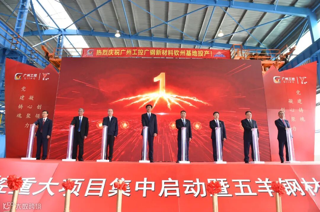 五羊钢材钦州基地作为主会场,在广西自贸试验区钦州港片区钦州广钢新材料园区内隆重举行投产仪式。广州工控党委书记、董事长周千定,以及钦州市委书记、自贸试验区钦州港片区工委书记许永锞,市委常委、自贸试验区钦州港片区管委会常务副主任王雄昌,副市长谢立品,市委秘书长方建安等钦州市领导亲临现场。中铁物资集团有限公司总经理、党委副书记唐建勇和广州工控纪委书记、监察专员伍良国,高管肖红民、原晓静,广钢新材料、项目建设方、合作伙伴、客户代表等共同出席见证此次投产仪式。仪式由广州工控总会计师、总经济师何利民主持。