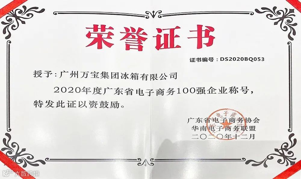 据悉,该榜单以2020年企业年度销售收入为基础,参考行业知名度、市场占有率、区域代表性、企业成长性、辐射带动性等指标,经专家评审选出,是电子商务行业权威的榜单之一,具有广泛的公信力和影响力。万宝冰箱符合各项评审指标,成功跻身广东电商百强企业行列。