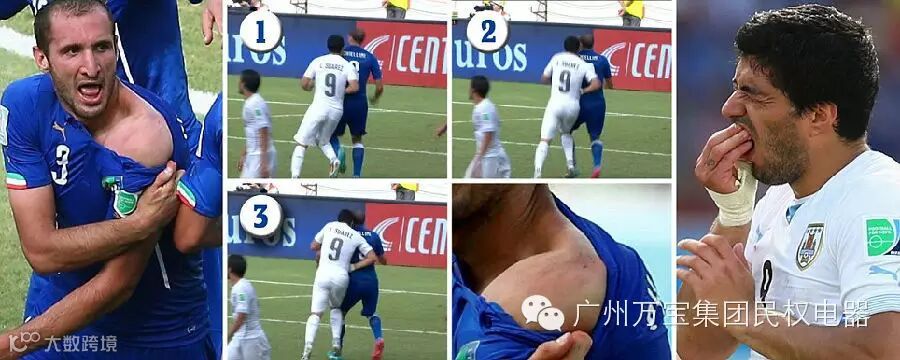 对阵意大利的生死战,苏亚雷斯基本被蓝衫军防线盯死,两次较有威胁的射门也未能逾越布冯的十指关,但或许是急于抢镜,或许是体内那部分吸血鬼的因子又在鼓噪,他竟然在禁区内抢位时再演咬人一幕,咬完基耶利尼后,还假装被铁肘砸中痛苦倒地,愤怒的基耶利尼主动拉下球衣露出“香肩”,上面的牙印清晰可见。