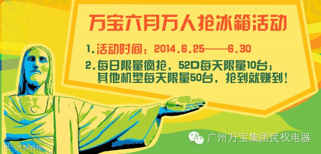 “广州万宝”携手世界杯为您带来新一轮的狂欢盛宴:“万人抢冰箱活动”