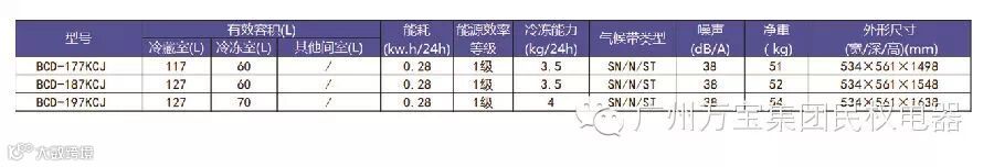 万宝冰箱 BCD-177KCJ/187KCJ/197KCJ 都属于两开门(上为冷藏室,下为冷冻室)玻璃钢面板冰箱。超级压缩机、加厚高密度发泡层、整体U壳设计、强磁门封加之万宝自主优化的冷循环系统的使用,使此系列冰箱的日耗电量低至0.28度/天(24小时)。不仅如此,万宝冰箱的三宽设计不仅能够保证冰箱在165V至242V间的正常运行,而且可以在中国各地区环境内的使用。能够满足各地消费者的使用需求。