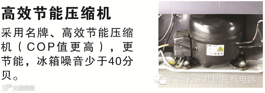 采用名牌、高效压缩机(cop值更高),更节能,冰箱噪音小于40分呗。