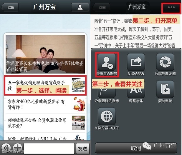 点击右上角按钮就可关注以查看并“广州万宝”哦。
