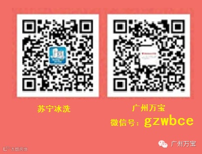 请扫描二维码关注“苏宁冰洗”官方微信及“广州万宝”微信订阅号。