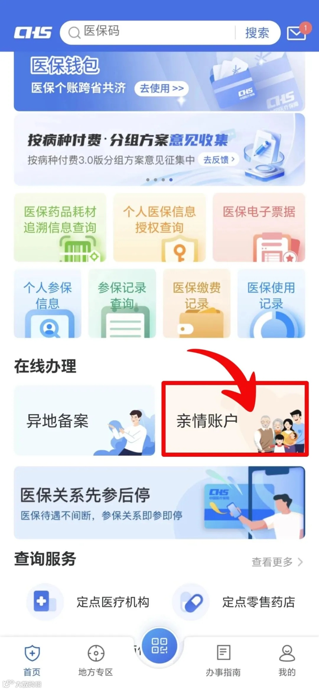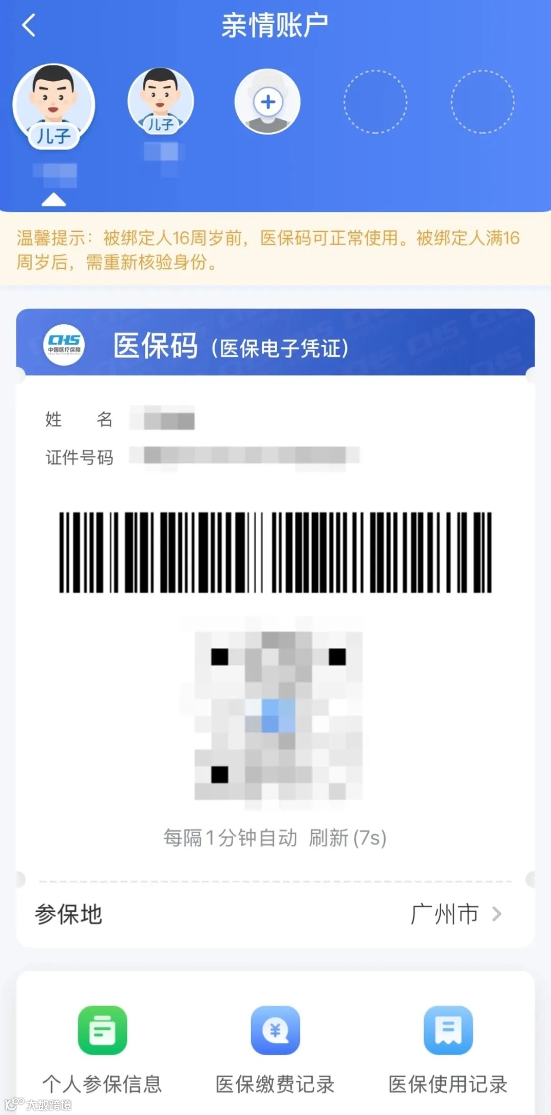 为宝宝完成亲情账户绑定后,系统自动激活宝宝的医保码。看病时,可以在APP内展示宝宝的医保码就医购药。