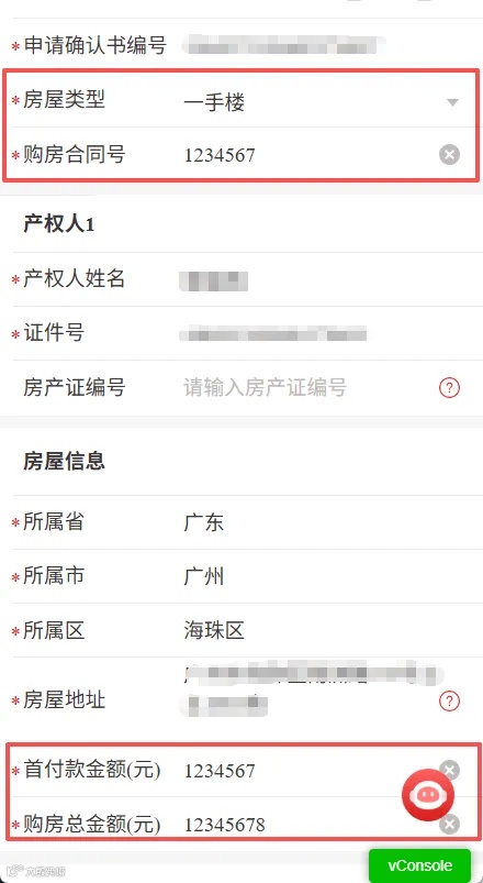 ★2、“同一套房,其他申请人是否已出具支付购房首付款确认书”项,勾选“是”,并录入“申请确认书编号”;