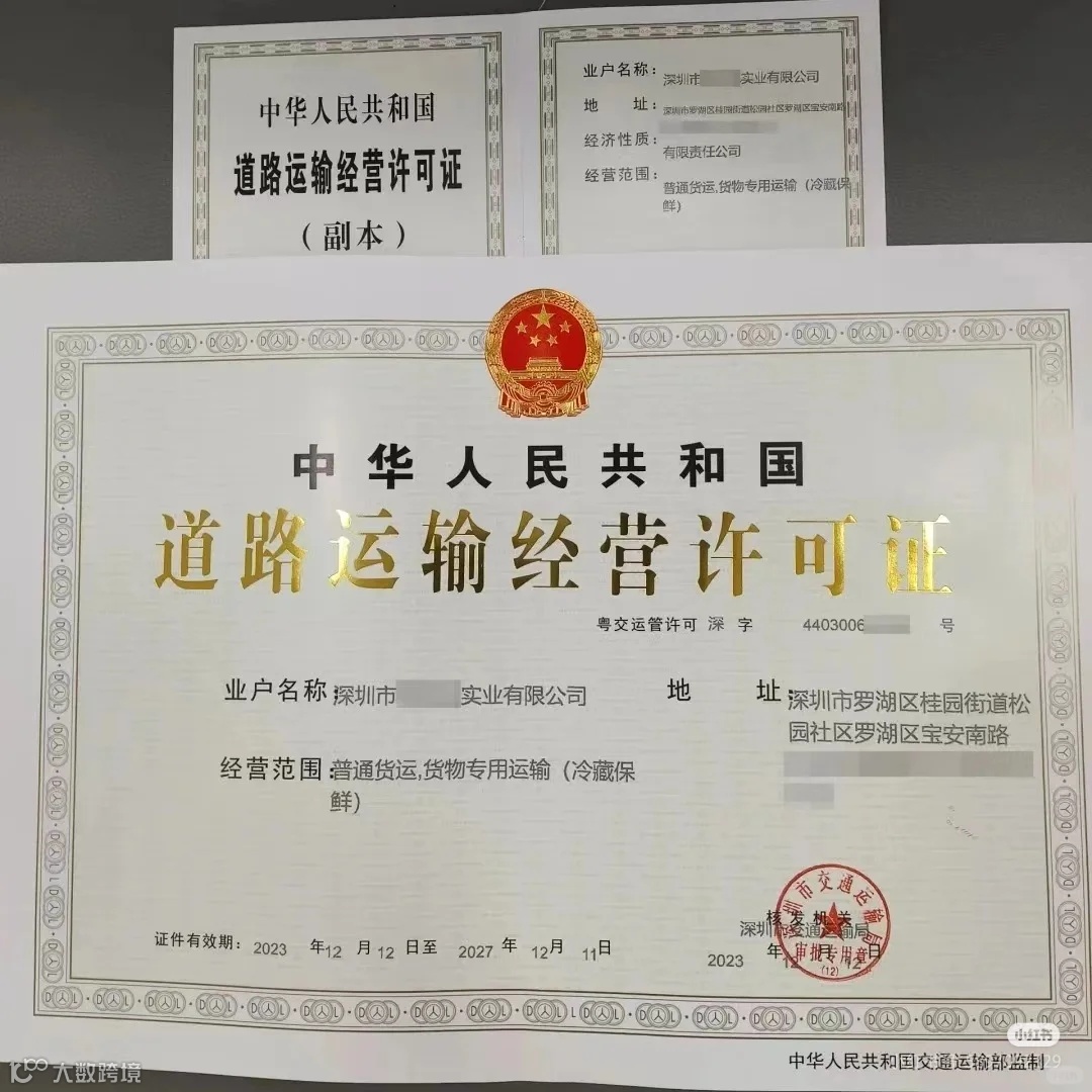 · 物流相关:道路运输经营许可证