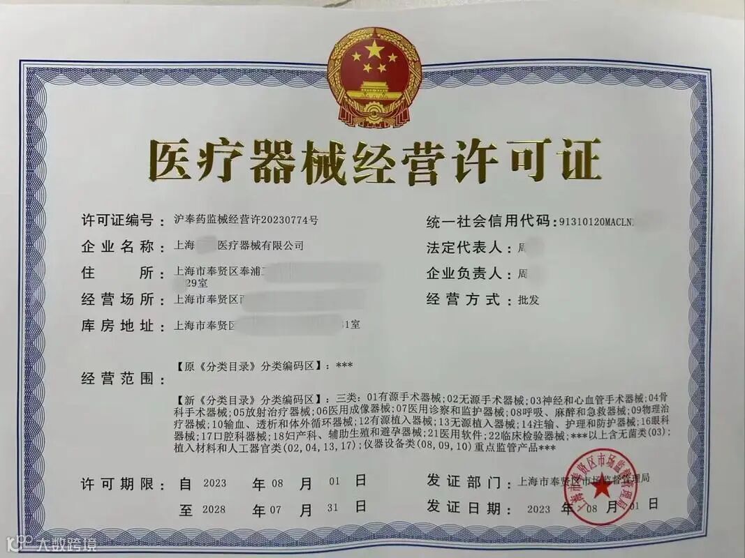 · 医药相关:医疗器械经营许可证