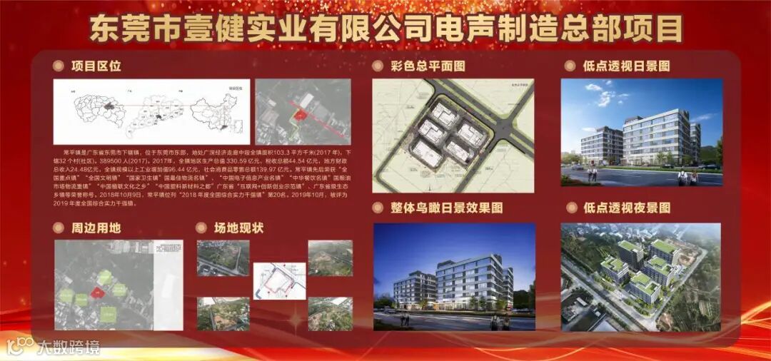 “壹健电声制造总部项目”由“广东宇博电子有限公司”、“东莞市旺高实业有限公司”及“东莞市成赞电子有限公司”共同投资建设,设立东莞市壹健实业有限公司进行运营管理。