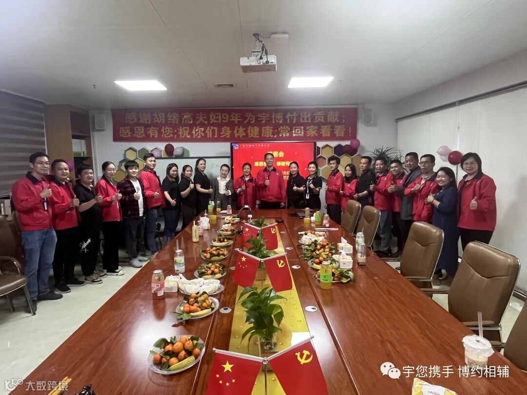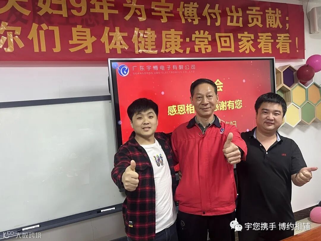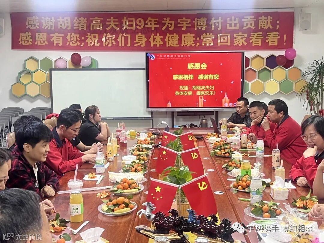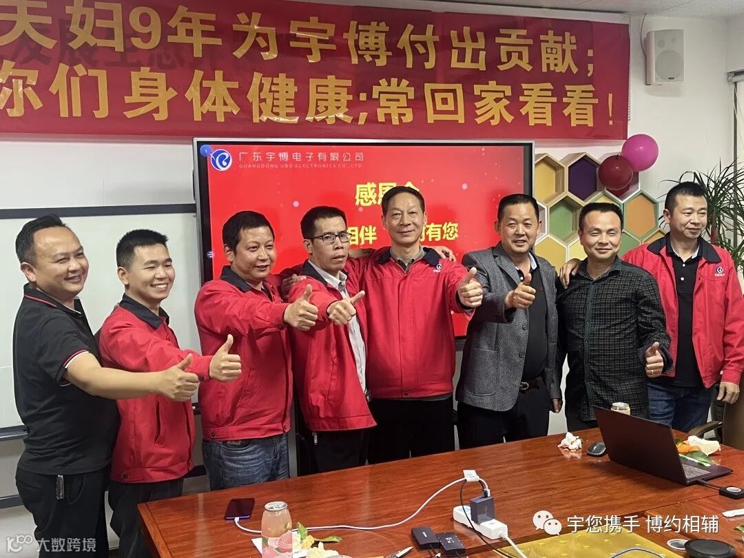 今天3月13日,公司为感谢胡高绪夫妇九年来对宇博事业的贡献与付出,并由高层领导林总为代表的管理团队,举办了《感恩欢送会》。