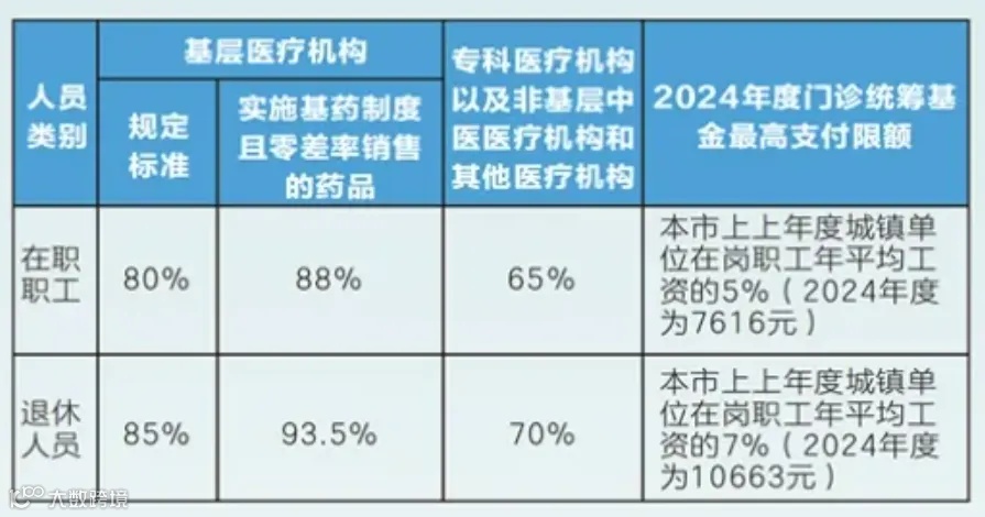 (2)普通门诊统筹基金支付比例及最高支付限额: