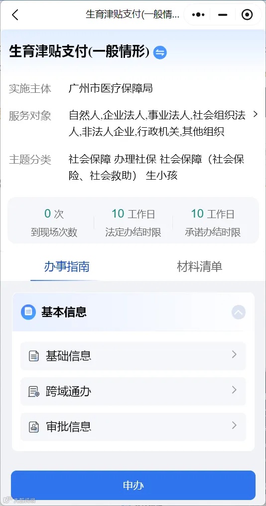 广州市生育津贴业务可全程在线申请并办结,无需现场办理,参保人可选择线上或现场两种途径办理。