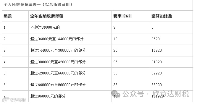 方式二:年薪收入50W,直接作为综合所得计算个税