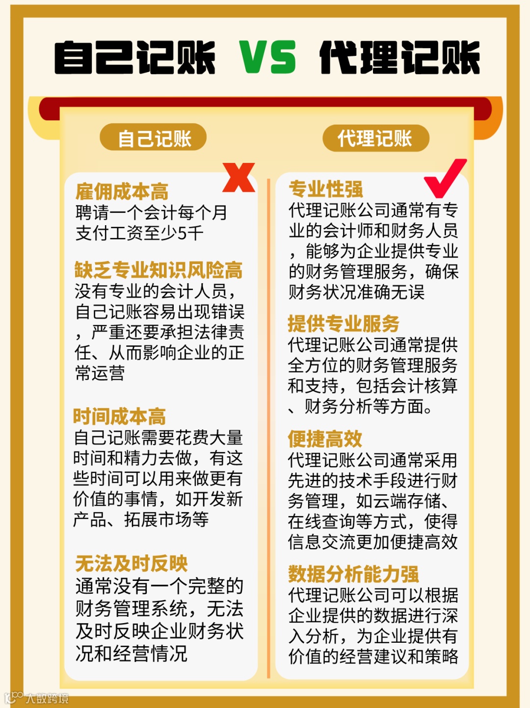 一图了解代理记账以及自己记账的区别!