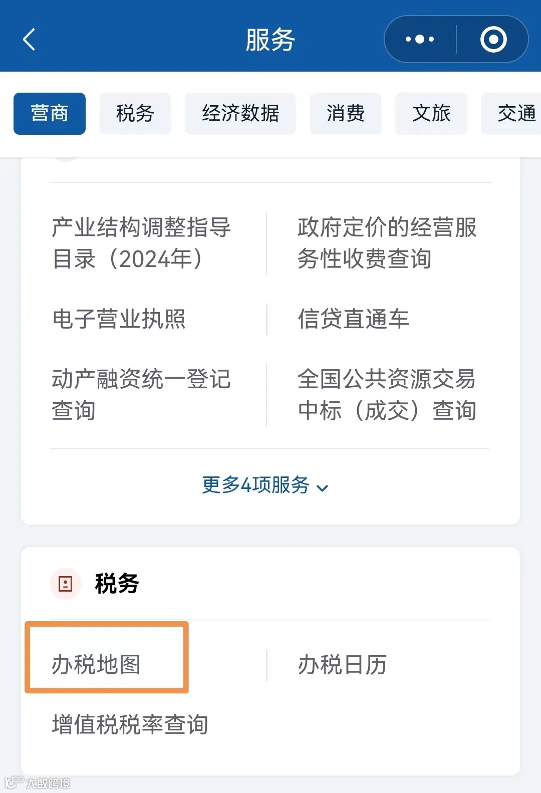 【国务院】小程序-【便民服务-更多】-往下滑【税务-办税地图】