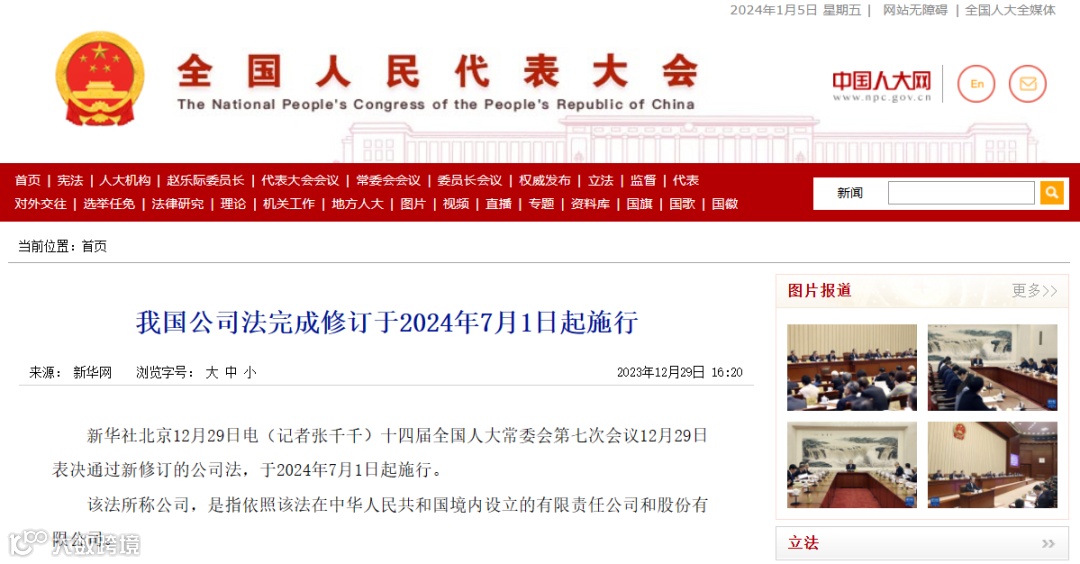 2023年12月29日,第十四届全国人人民代表大会常务委员会第七次会议通过了对《公司法》的第二次修订,自2024年7月1日起施行。