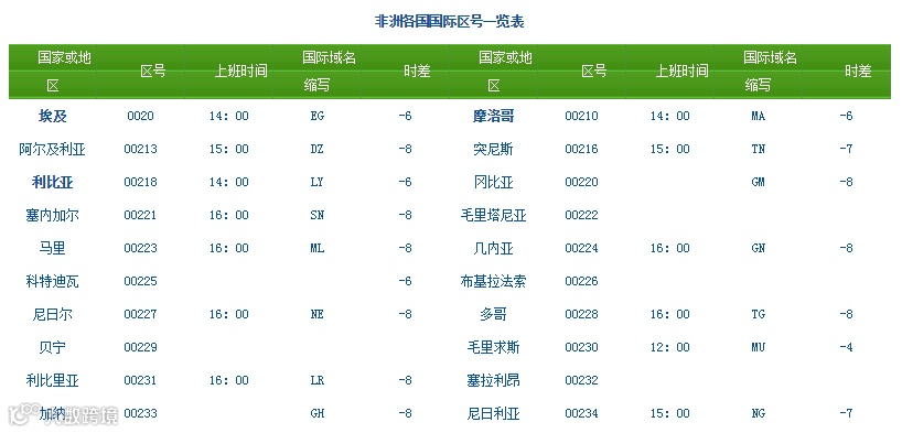 国际区号查询