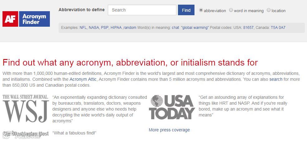 英文缩写查询 http://www.acronymfinder.com/