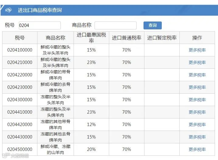 进出口商品税率查询