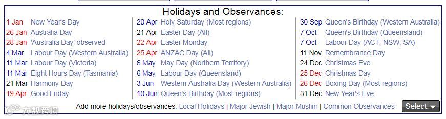 各国日历&节假日 https://www.timeanddate.com/calendar/