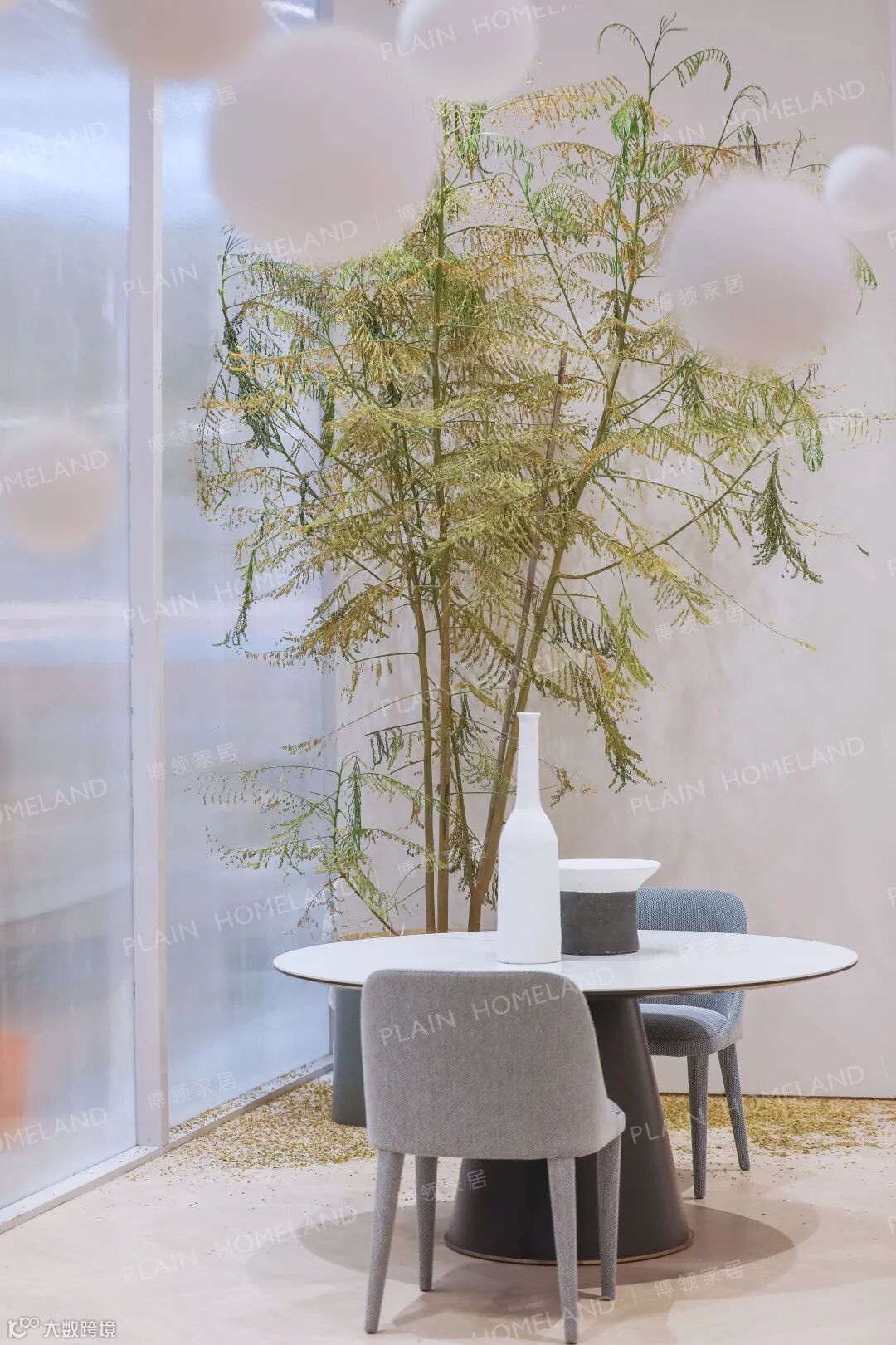 空间的整体设计既讲求艺术的搭配性又力求真实的生活感。希望透过产品与空间之间,空间与空间之间的有序对话,进行更加生活化的展示,连通日常的居家空间,运用灯光、饰品、绿植等配饰增强空间的氛围和艺术效果,在追求艺术时尚的同时增强生活代入感。