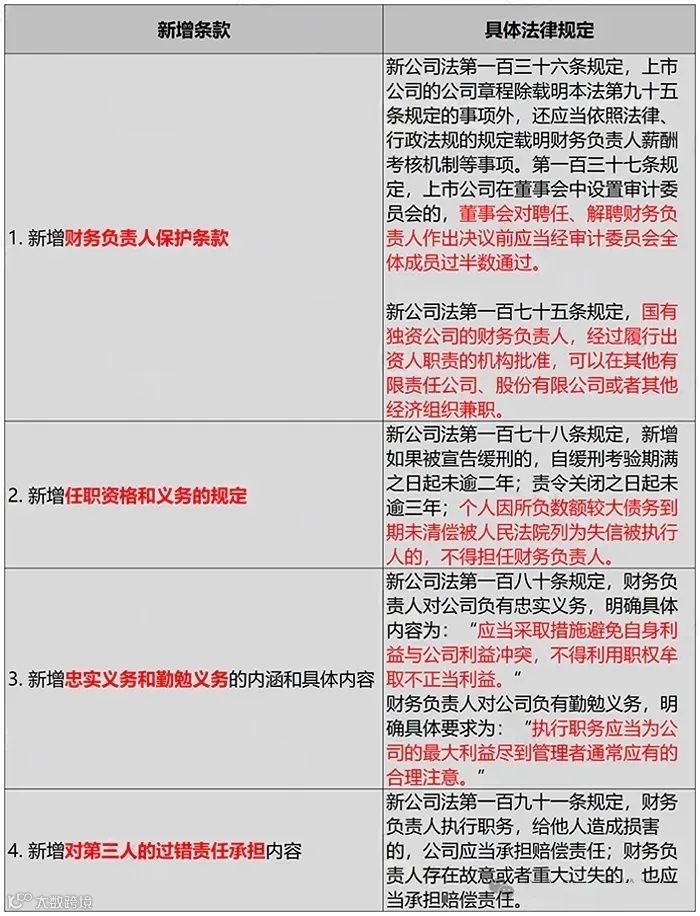 新公司法对于财务负责人的职责进行了更加明确的规定,要求财务负责人对公司财务状况进行全面监督和管理,确保公司财务报告的真实、准确和完整。