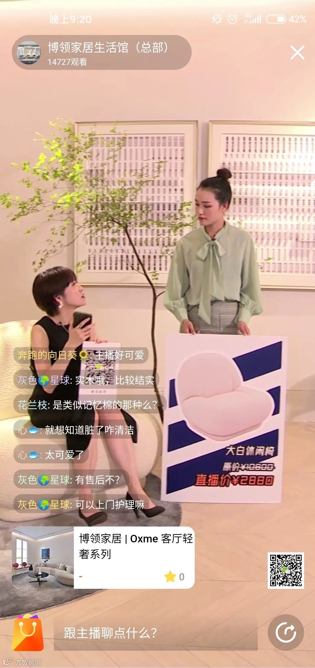 在当晚的直播中,时尚博主@有个嘉宝宝、博领家居傲觅品牌店长秋秋、博领家居品牌总监戴钰明,一同现身直播间,为直播间的小伙伴在线种草家居好物,分享软装搭配等。