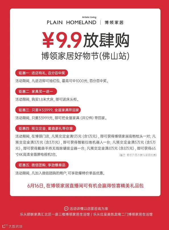 直播虽然收官,但是优惠福利仍将继续。即日起至6.28,博领家居四大全店优惠持续进行,同时博领家居也将为一兜糖的粉丝保留直播特惠价哦。