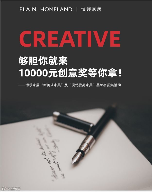 博领家居“新美式家具”及“现代极简家具”品牌名有奖征集活动现已向社会各界全面开启,参与者将有机会赢取10000元创意大奖,赶快行动起来吧!