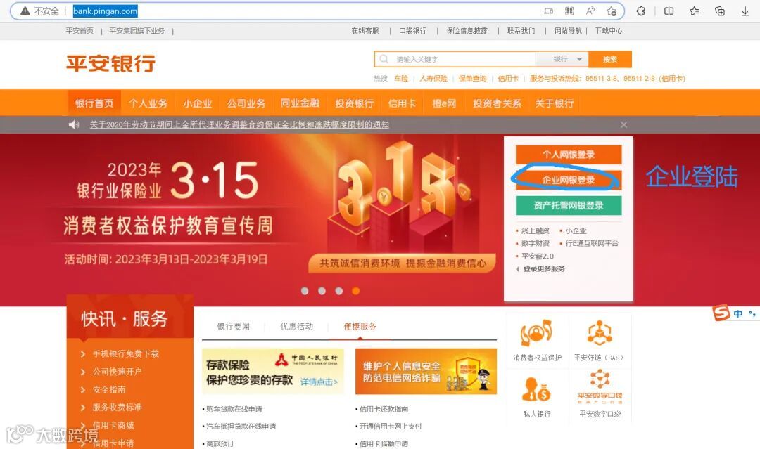 点击平安银行官方网站 (pingan.com)登录中国平安银行官网,点击“银行-公司业务”。