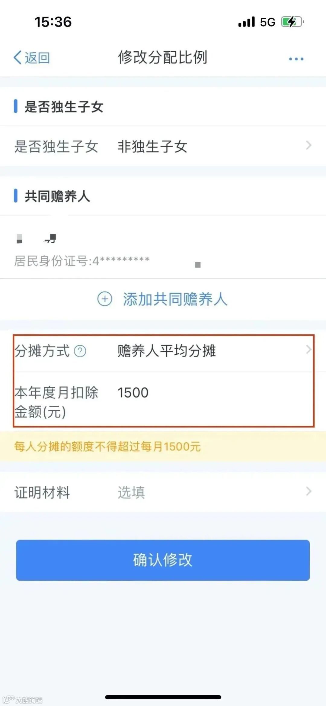 温馨提示:如您是非独生子女,需要选择“分摊方式”,最高扣除金额不得超过1500元/月。