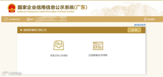 简易注销和一般注销均需在广州市市场监督管理局网站进行注销公告填报(必须使用法人单位账号办理)。