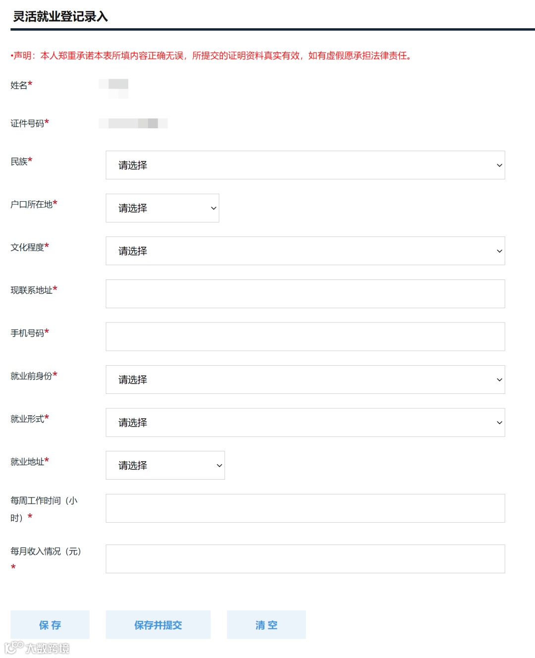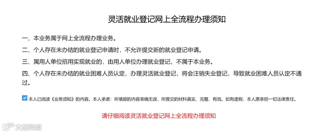 4、阅读办理须知后,选择就业形式,然后输入/选择相应的信息,进行就业登记办理。