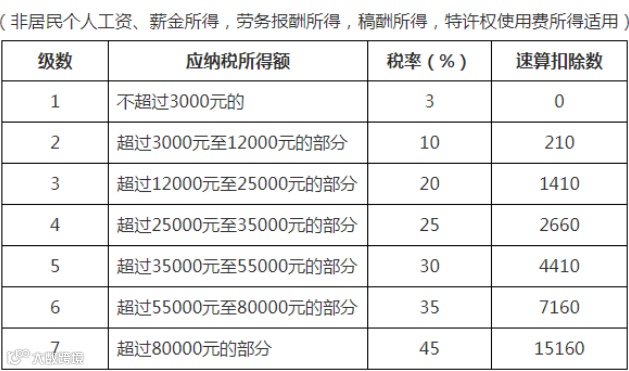 2、非居民个人取得工资、薪金所得;劳务报酬所得;稿酬所得和特许权使用费所得,依照本表按月换算后计算应纳税额。