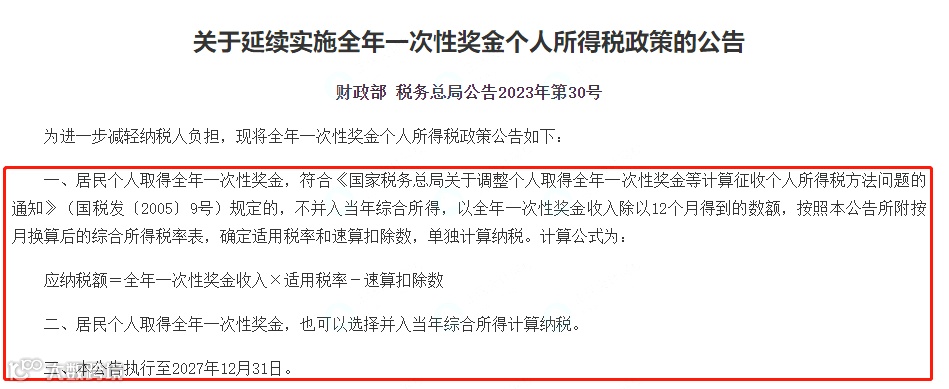 一、年终奖单独计税政策延续到2027年底