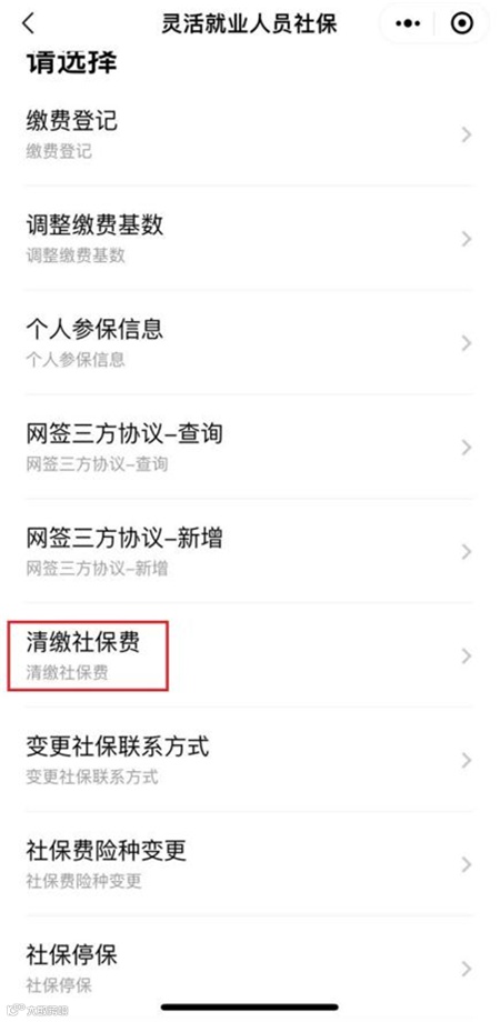 (1)进入灵活就业人员社保模块,点击选择“清缴社保费”。