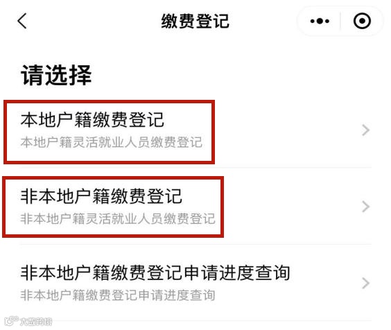 (4)进入“缴费登记”模块,按照户籍类型选择“本地户籍缴费登记”或“非本地户籍缴费登记”。