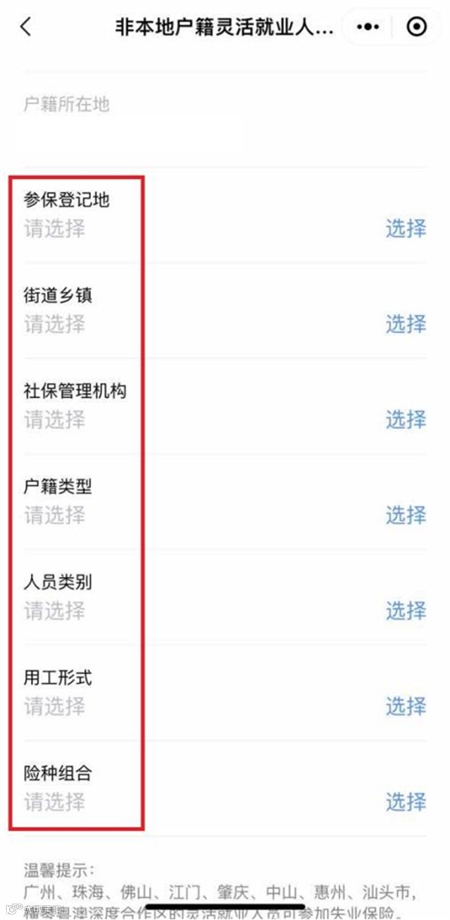 (6)选择“非本地户籍缴费登记”的,系统同样会自动带出姓名、身份证等信息,参保人需自行填写参保登记地、街道乡镇、户籍类型等信息,根据需要选择对应“险种组合”点击“确定”后。