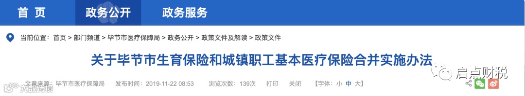 根据毕节市人民政府2019 年发布的《关于毕节市生育保险和城镇职工基本医疗保险合并实施办法》,生育保险和城镇职工医疗保险合并实施。