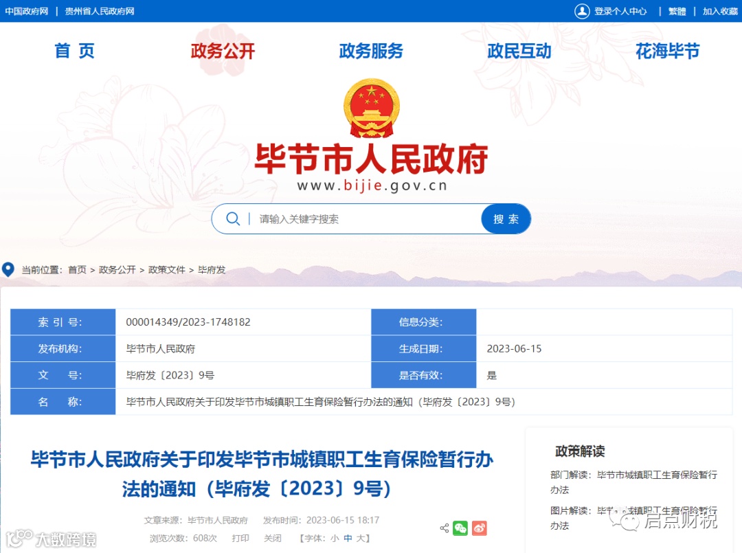 6月15日,贵州省毕节市人民政府发布了《毕节市人民政府关于印发毕节市城镇职工生育保险暂行办法的通知(毕府发〔2023〕9号)》,其中明确提到灵活就业人员也能报销生育保险,领取生育津贴。