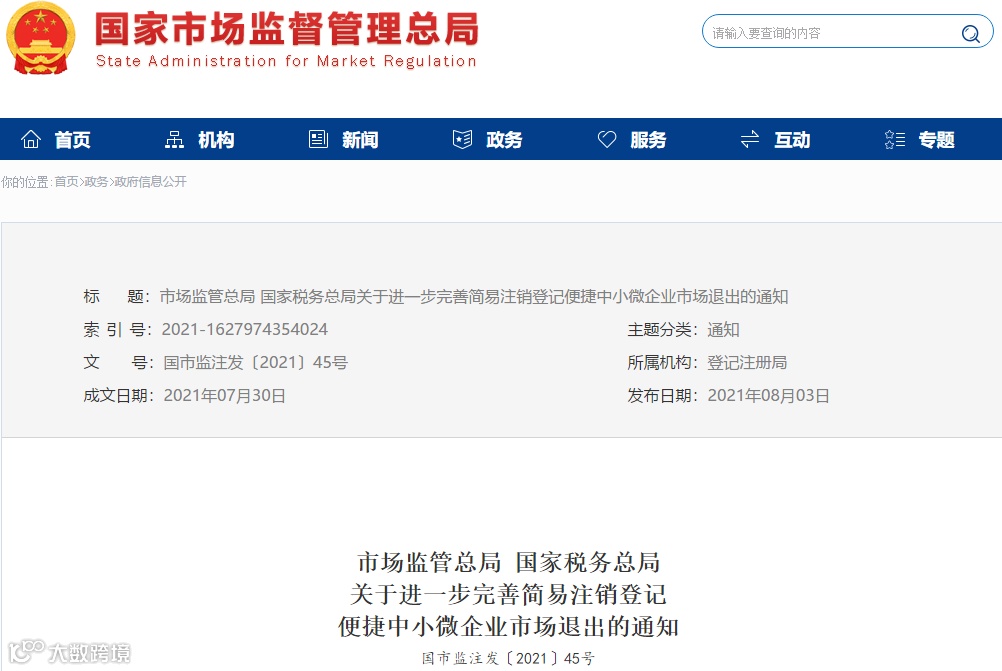 3、将简易注销登记的公示时间由45天压缩为20天,公示期届满后,市场主体可直接向市场监管部门申请办理简易注销登记。