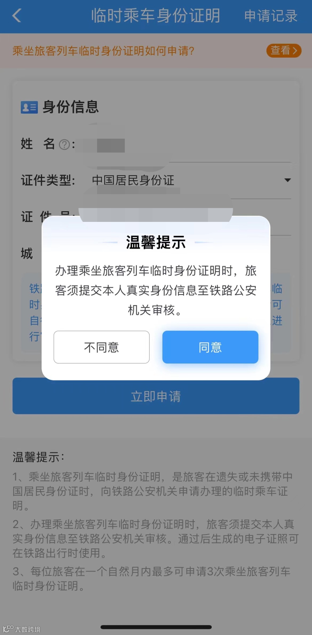 快速办理“电子临时乘车身份证明”