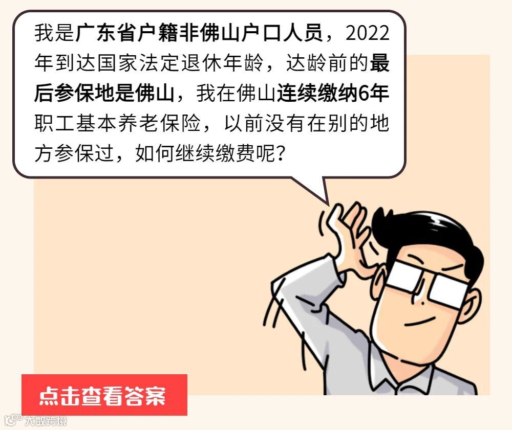 达到法定退休年龄时,在户籍所在地没有参加职工基本养老保险,佛山市职工基本养老保险累计缴费年限满10年(含10年)以上的(含在本省其他地方参保转入佛山市的缴费年限),按规定选择佛山市作为基本养老保险待遇领取地的,可在佛山市申请继续缴费。在户籍地参加职工基本养老保险的,需把社会保险关系转回到户籍地,在户籍地办理继续缴费手续及申领养老保险待遇。