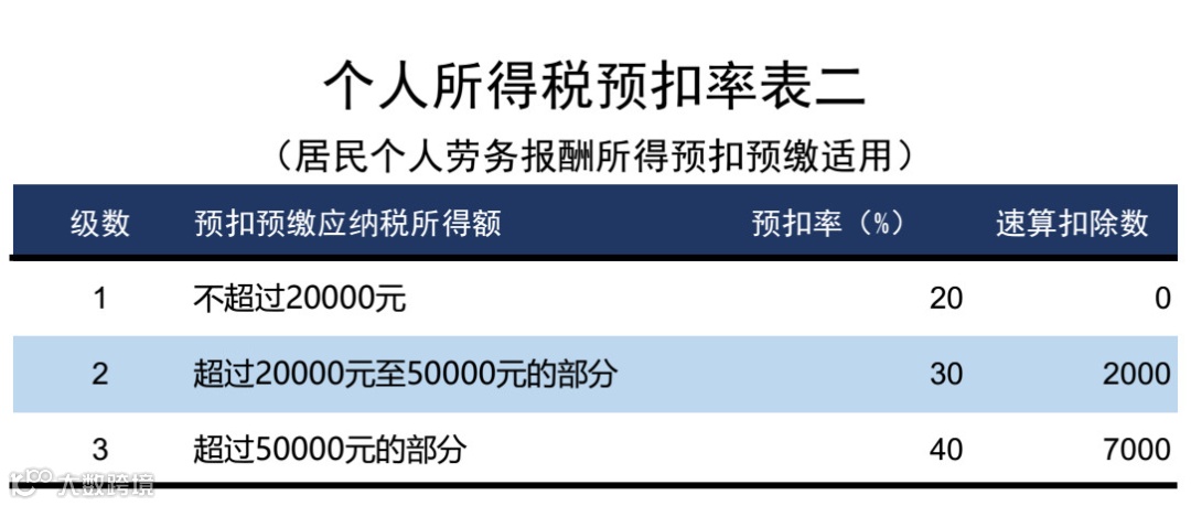 ②劳务报酬所得的年收入额=5000×(1-20%)=4000(元)