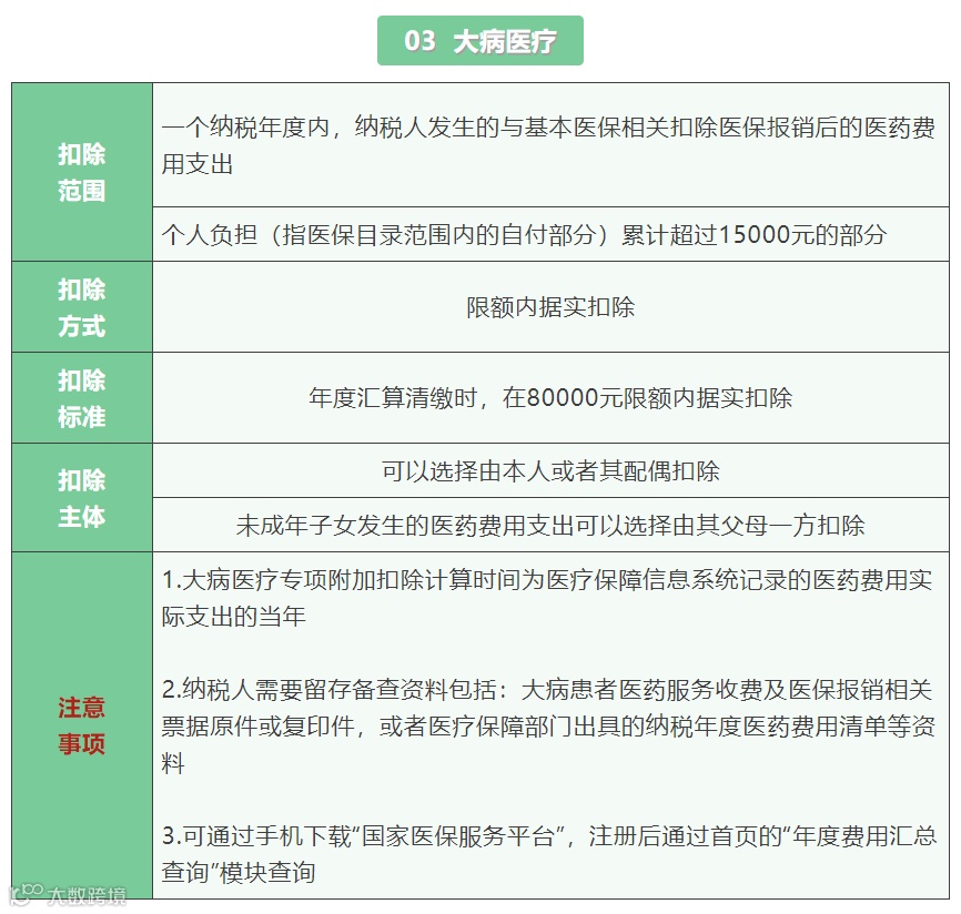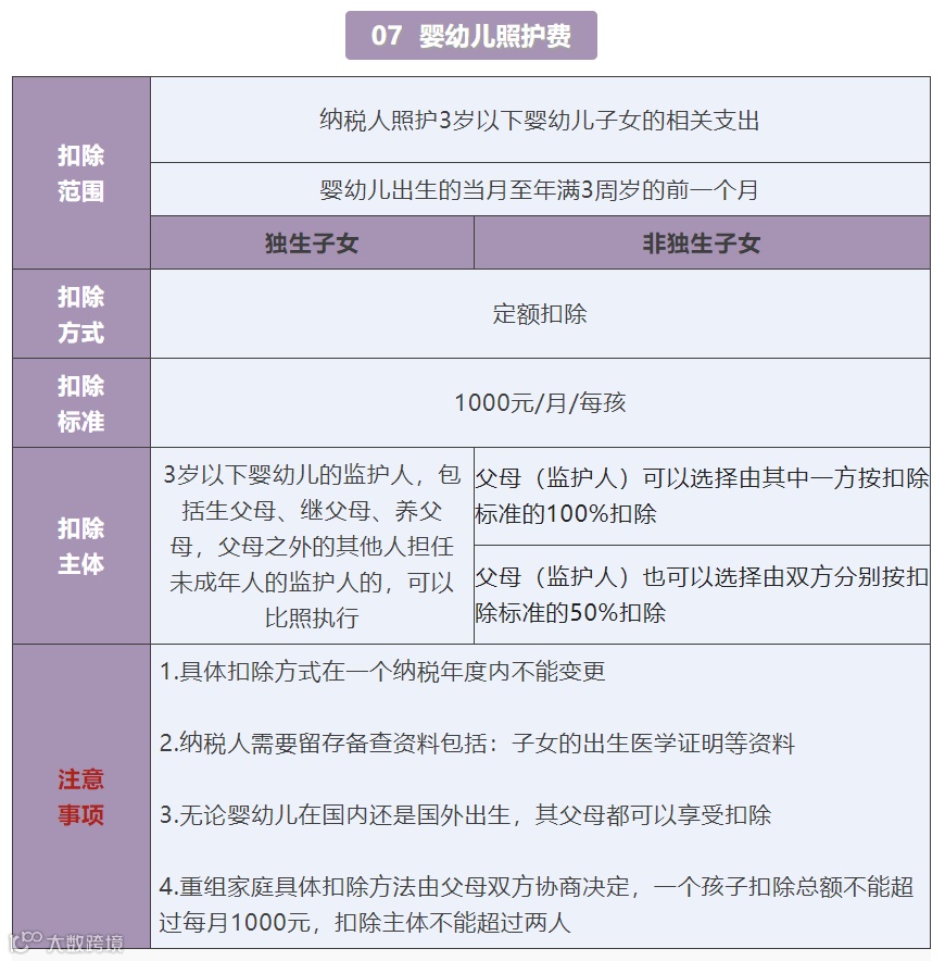 (2)专项附加扣除:子女教育、继续教育、大病医疗、3岁以下婴幼儿照护支出、住房贷款利息、住房租金和赡养老人等七项专项附加扣除。