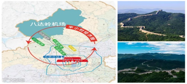 八达岭机场地处北京市延庆区八达岭长城风景旅游区,延庆是2019年北京世园会举办地,是2022年北京冬奥会三大赛区之一,全区共有14个A级旅游景区;八达岭长城是世界文化遗产,是接待中外游人最多,接待世界各国元首、政府首脑最多,举办中外文化交流活动最多的长城景区;