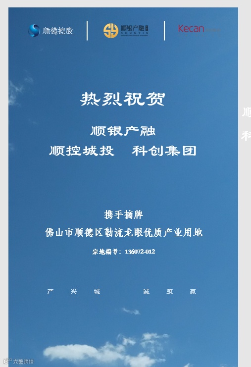 广东集龙产业园有限公司由广东顺银产融投资有限公司与顺德控股集团下属企业广东顺控城投置业有限公司、广东顺德科创管理集团有限公司两家国资企业共同出资成立,顺银产融公司占股60%。