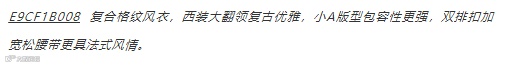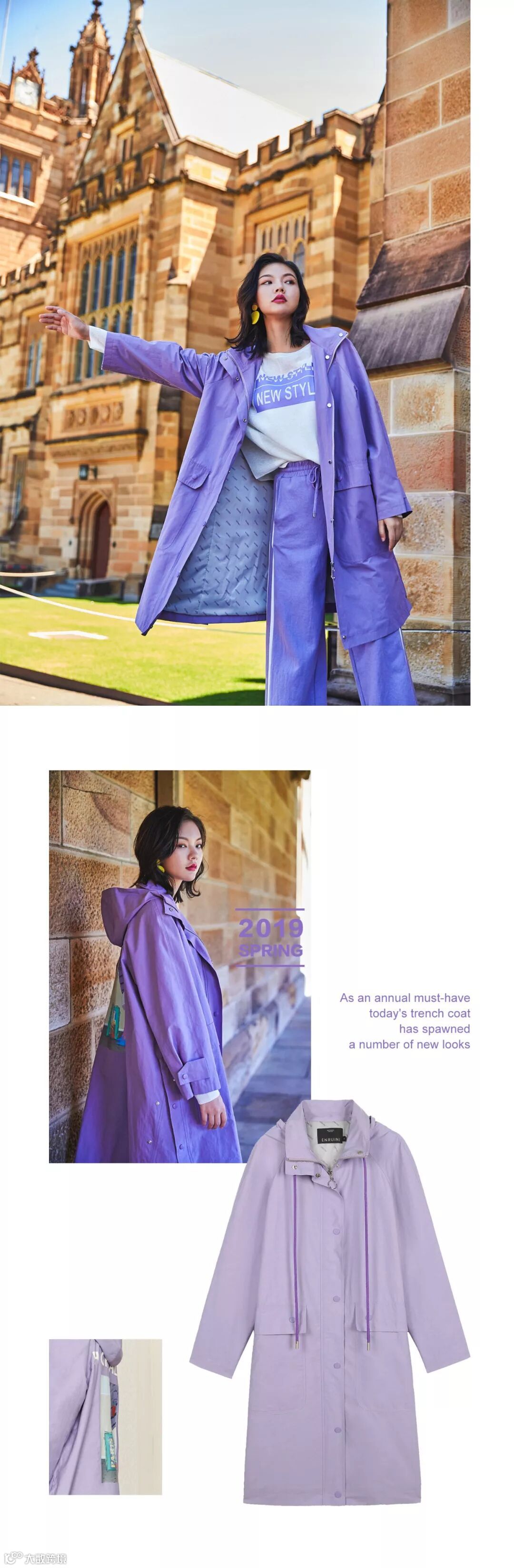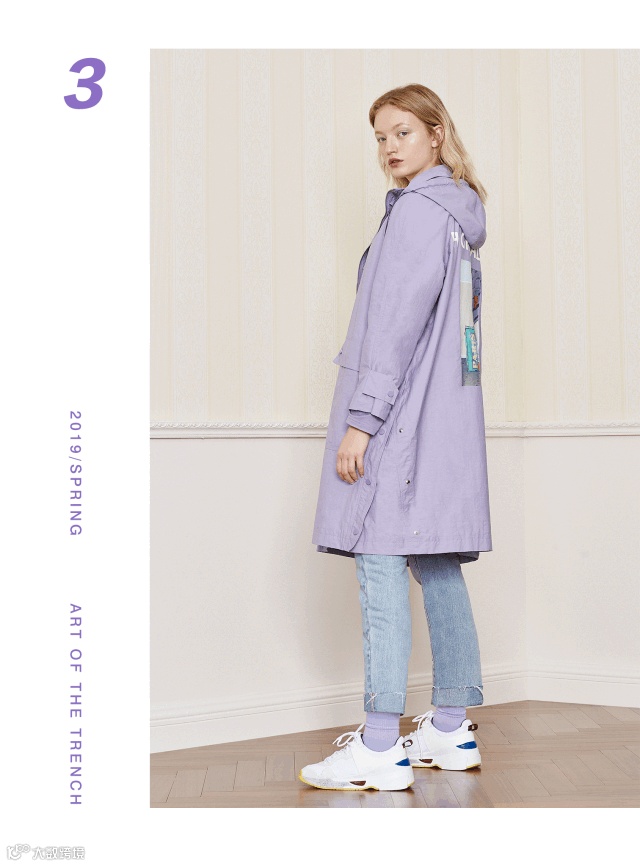作为每年必备款,时至今日风衣已经衍生出许多新的风貌。从颜色、材质都大不相同。除了经典卡驼色之外,今年大热的石楠紫/橡皮粉/海雾蓝/格纹都是不错的选择。大胆尝试,你就是主宰春天的fashion girl。