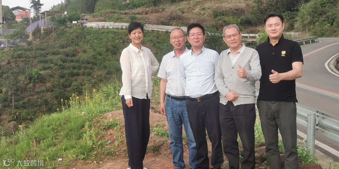 左二起:雅安市经合局科长王永利、雅安市雨城区经合局副局长高伟志、雅安市经合局副局长谭昌明、雅安市雨城区自然资源和规划局刘冰玉、周公山高宝村支部书记秦光基