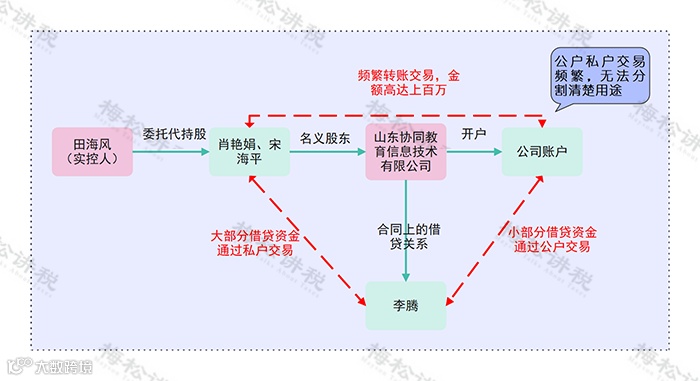 2、协同教育公司的账户与肖艳娟、宋海平等股东的账户之间存在大量、频繁的资金往来,且资金用途复杂,导致公司财产与股东财产无法进行区分。判决田海风、肖艳娟、宋海平对涉案借款承担连带清偿责任。